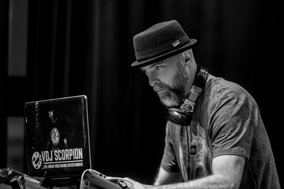 With over 20 years of experience rocking nightclubs, bars & cooperate events all over Europe and the U.S., VDJ Scorpion is amongst the world’s elite of Video-DJs performing not only audio DJ-Sets but spinning actual visual content such as original music videos, custom video edits as well as short movie & comedy skits alongside the matching songs simultaneously in realtime.